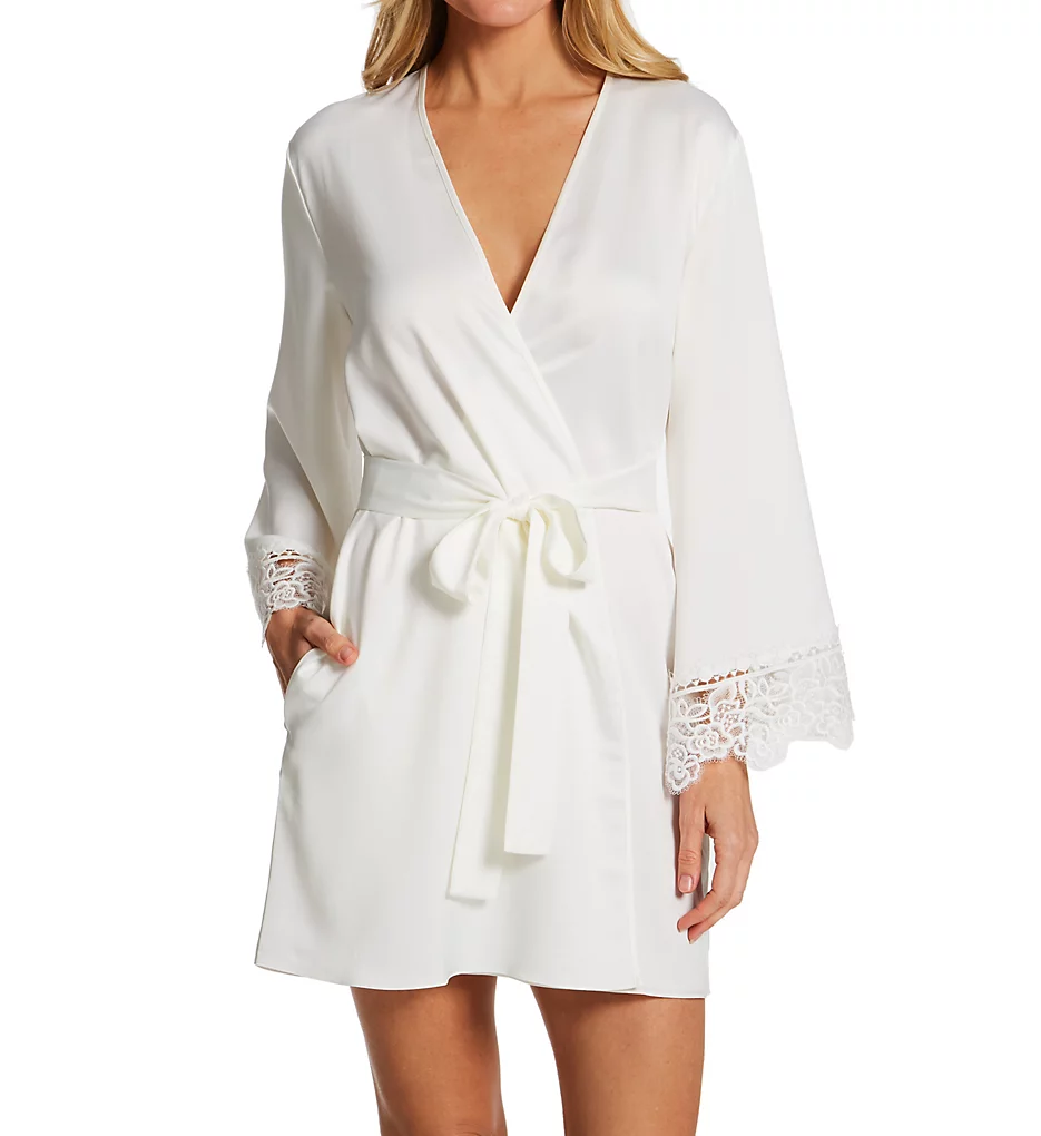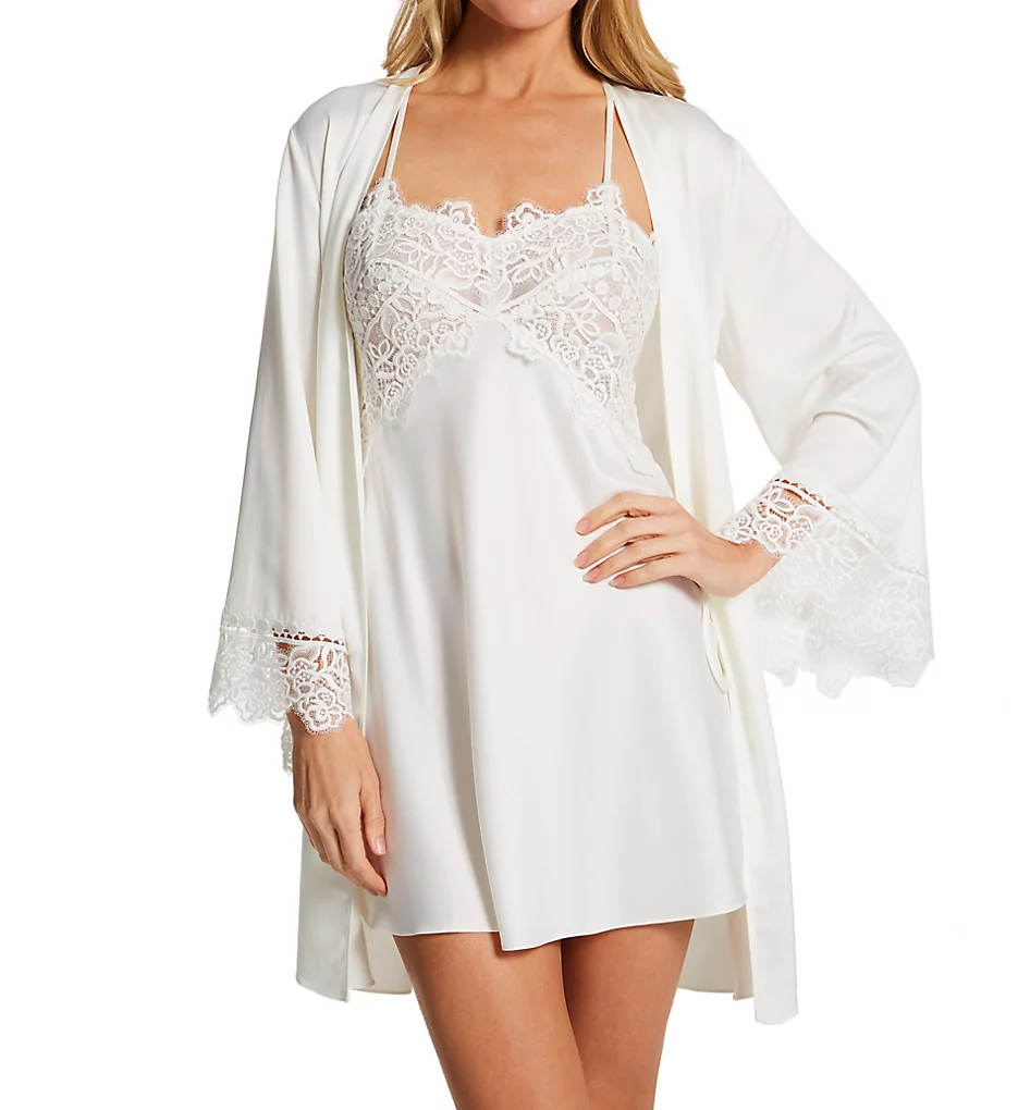 Shirley Of Hollywood Stretch Lace Long Sleeve Trimmed Robe With Thong 31106