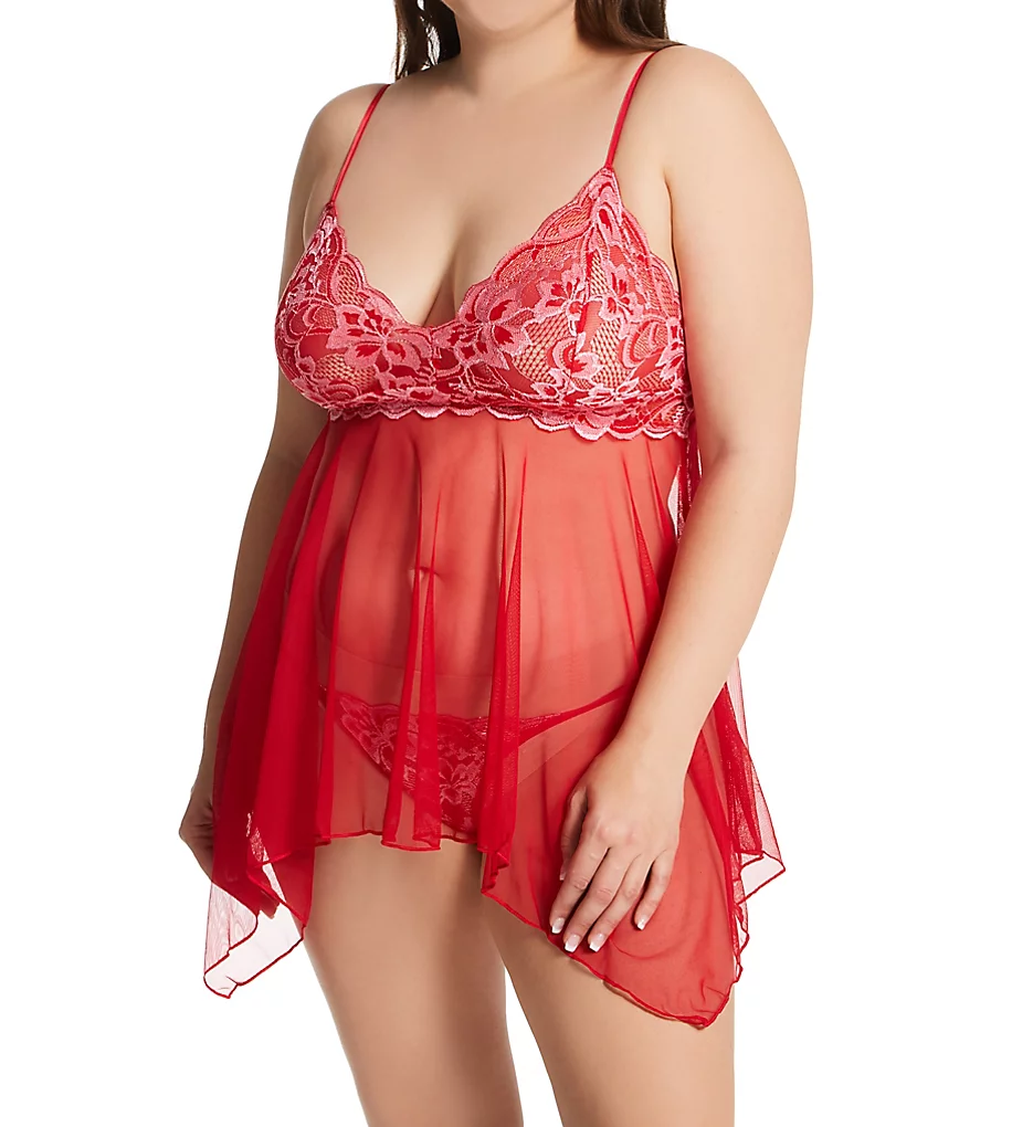 Shirley Of Hollywood Plus Size Lace And Net Open Tip Baby Doll X3394